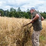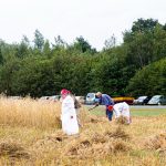De rogge wordt op ouderwetse wijze van het land gehaald. Het maaien gebeurt met een door het paard voortgetrokken maaimachine. Enkele boeren die de kunst nog verstaan, zullen de rogge gaan maaien met een ‘zig’; een soort handzeis. De boerinnen, binden het gemaaide koren in bundels en zetten dit op schoven om te drogen.